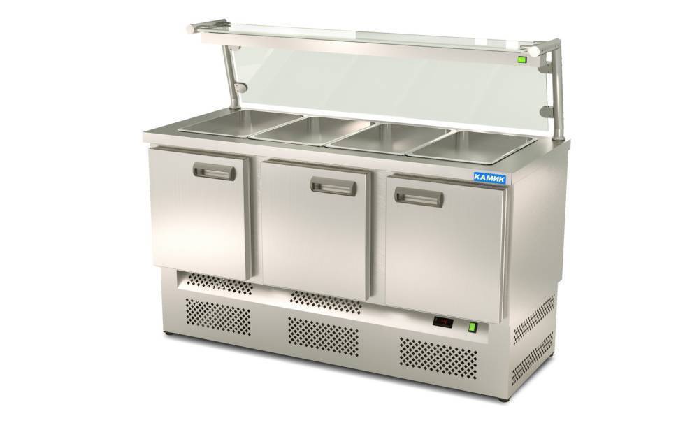Салат бар холодильный модульный (агрегат снизу) с полкой и подсветкой 1500*700*850 3 двери
