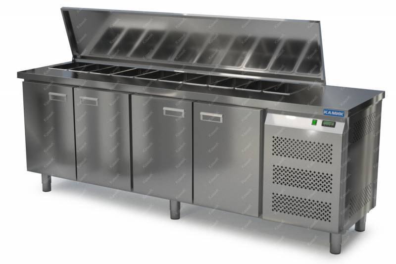 Салат-бар охлаждаемый без борта (боковой агрегат) 2300*700*850 4 двери с крышкой