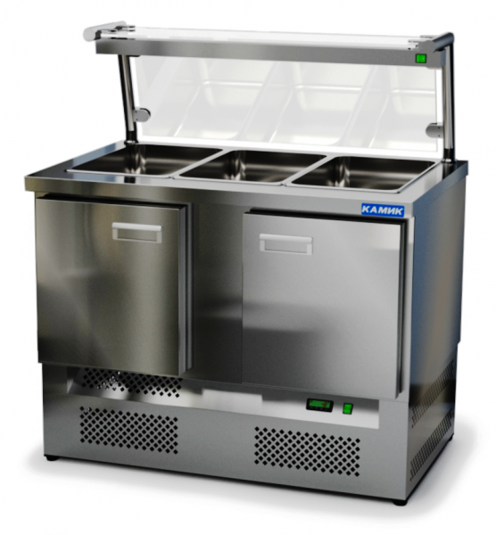Салат бар охлаждаемый модульный (агрегат снизу) с полкой и подсветкой 1100*700*850 2 двери