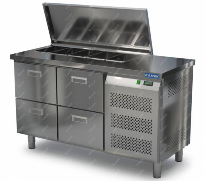 Салат-бар охлаждаемый с бортом (боковой агрегат) 1400*700*850 4 ящика с крышкой