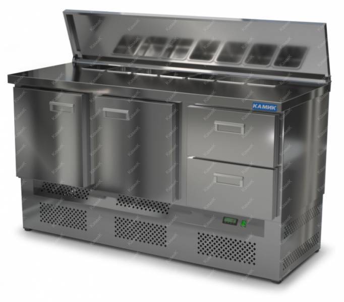 Салат-бар с бортом (нижний агрегат) 1500*700*850 2 двери, 2 ящика