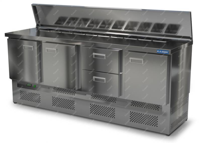 Салат-бар с бортом (нижний агрегат) 2000*700*850 3 двери, 2 ящика