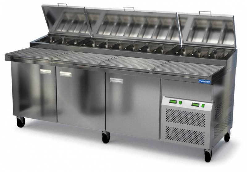 Стол охлаждаемый д/пиццы СОП3/G 2370*860*865(1015) горка под 12 GN1*3, на колесах, охл. столешница