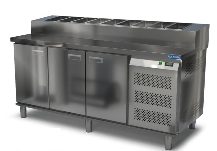 СТОЛ ОХЛАЖДАЕМЫЙ с горкой для пиццы GN 1/3 (боковой агрегат) 1850*700*850(990) 3 двери