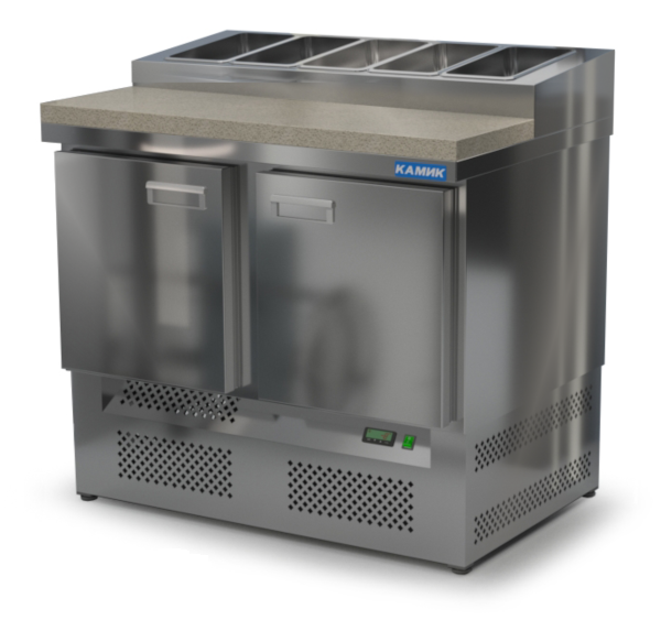 СТОЛ ОХЛАЖДАЕМЫЙ с горкой для пиццы GN 1/3 (нижний агрегат) 1000*700*850(990) 2 двери, камень