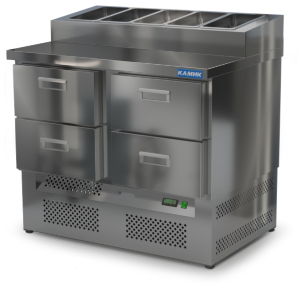 СТОЛ ОХЛАЖДАЕМЫЙ с горкой для пиццы GN 1/3 (нижний агрегат) 1000*700*850(990) 4 ящика