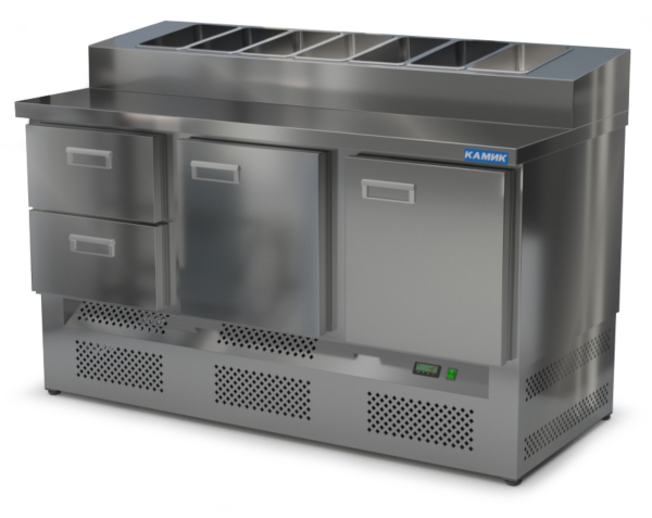 СТОЛ ОХЛАЖДАЕМЫЙ с горкой для пиццы GN 1/3 (нижний агрегат) 1500*700*850(990) 2 двери, 2 ящика