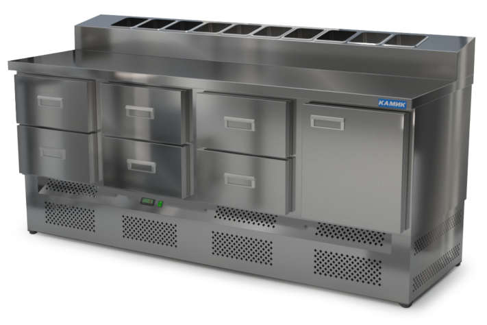 СТОЛ ОХЛАЖДАЕМЫЙ с горкой для пиццы GN 1/3 (нижний агрегат) 2000*700*850(990) 1 дверь, 6 ящиков