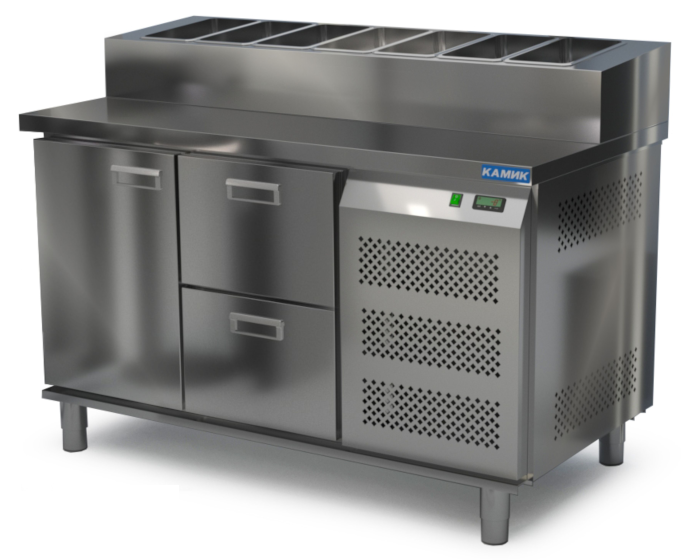 СТОЛ ОХЛАЖДАЕМЫЙ с горкой для пиццы GN 1/6 (боковой агрегат) 1400*700*850(990) 1 дверь, 2 ящика