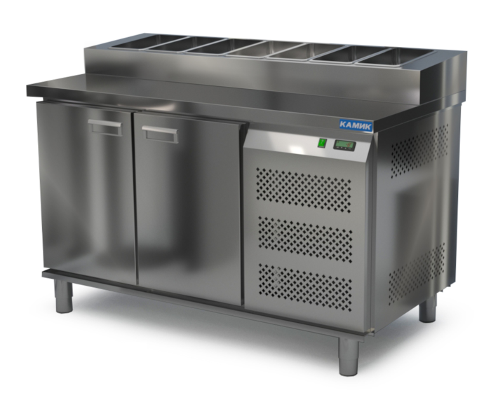 СТОЛ ОХЛАЖДАЕМЫЙ с горкой для пиццы GN 1/6 (боковой агрегат) 1400*700*850(990) 2 двери