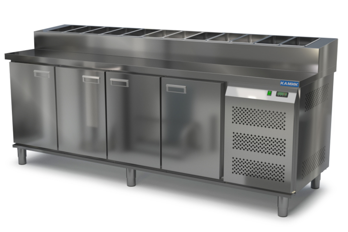 СТОЛ ОХЛАЖДАЕМЫЙ с горкой для пиццы GN 1/6 (боковой агрегат) 2300*700*850(990) 4 двери