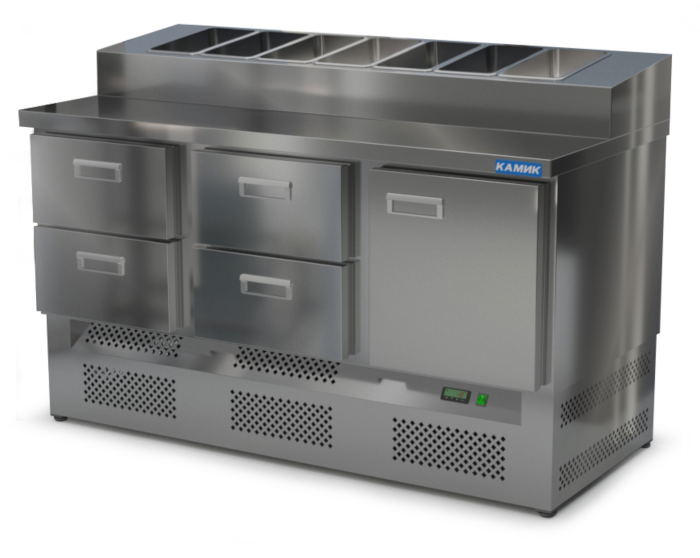 СТОЛ ОХЛАЖДАЕМЫЙ с горкой для пиццы GN 1/6 (нижний агрегат) 1500*700*850(990) 1 дверь, 4 ящика