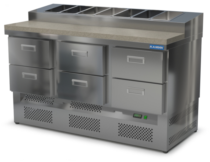 СТОЛ ОХЛАЖДАЕМЫЙ с горкой для пиццы GN 1/6 (нижний агрегат) 1500*700*850(990) 6 ящиков, камень