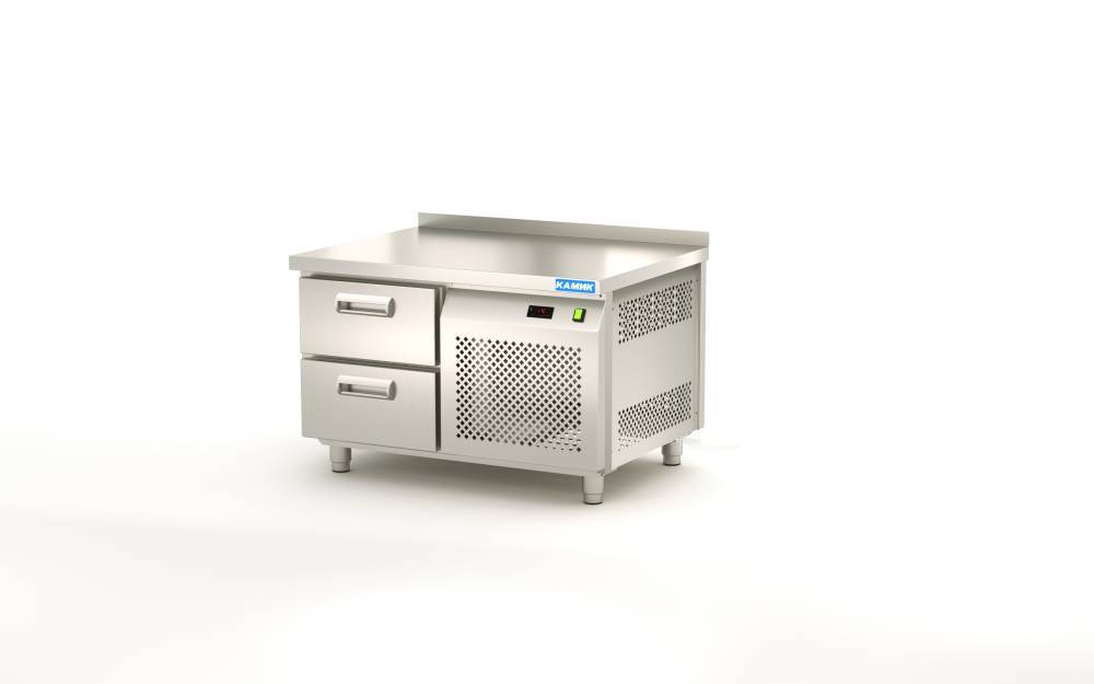 СТОЛ ОХЛАЖДАЕМЫЙ под тепловое оборудование (боковой агрегат, с бортом) 900*700*620 2 ящика