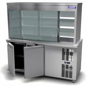 Витрина холодильная с охлаждаемым нижним объемом 1600*700*850(1650) 2 двери