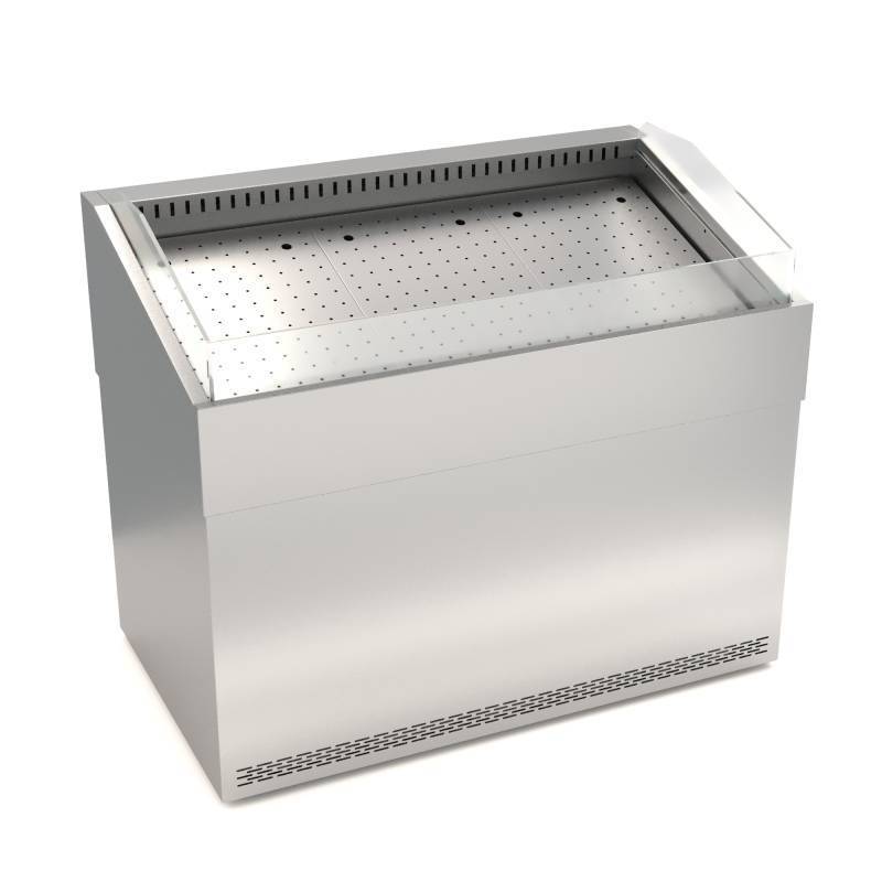 Решетки агрегатного отсека оцинкованная сталь. Подсветка, слив, подключение к водопроводу, перфорированные вставки. Без охл. внутр. объема, автоматическая оттайка. Температурный режим 0...-2°С.