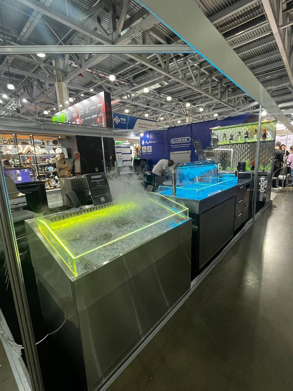 Витрина холодильная для рыбы 1300*680*884 встраиваемая, защитный экран