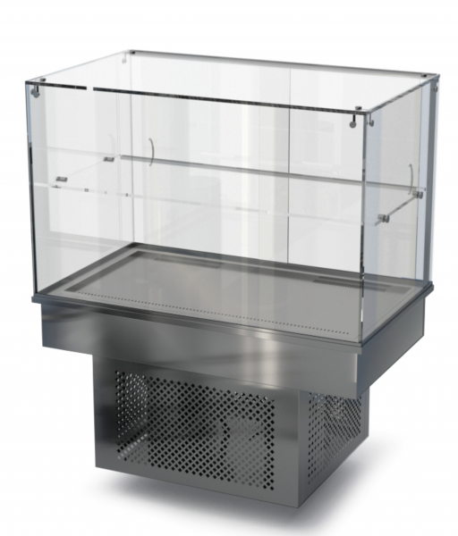Встраиваемая холодильная витрина 1100*650*600(1150). Предназначена для предприятий общепита. Каленое стекло 10 мм, 2 уровня. Рабочее напряжение 220 В. Оснащена подстветкой. Стеклянный купол поставляется в разобранном виде.