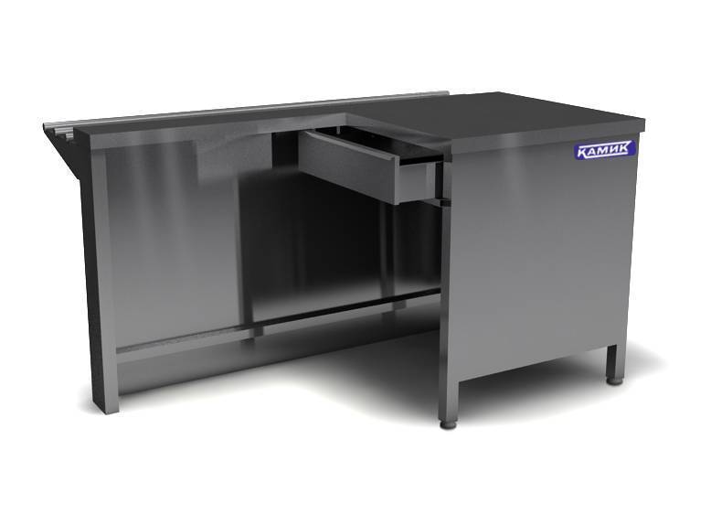 Нерж. сталь 1мм-430. Правый.(со стороны покупателя ставится в линию раздачи справа) Выдвижной ящик. Без отделки декоративной.