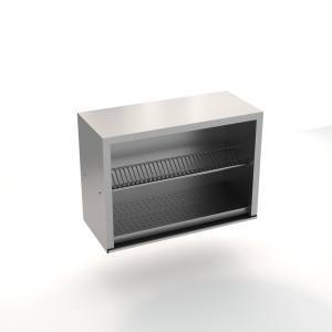 Настенная полка-шкаф 610*400*650 из пищевой нержавеющей стали AISI 430 для сушки тарелок. Предназначена для профессиональной кухни предприятий общепита. Задняя стенка из стали AISI 430. Оснащена внутренней перфорированной полкой. Без дверей.