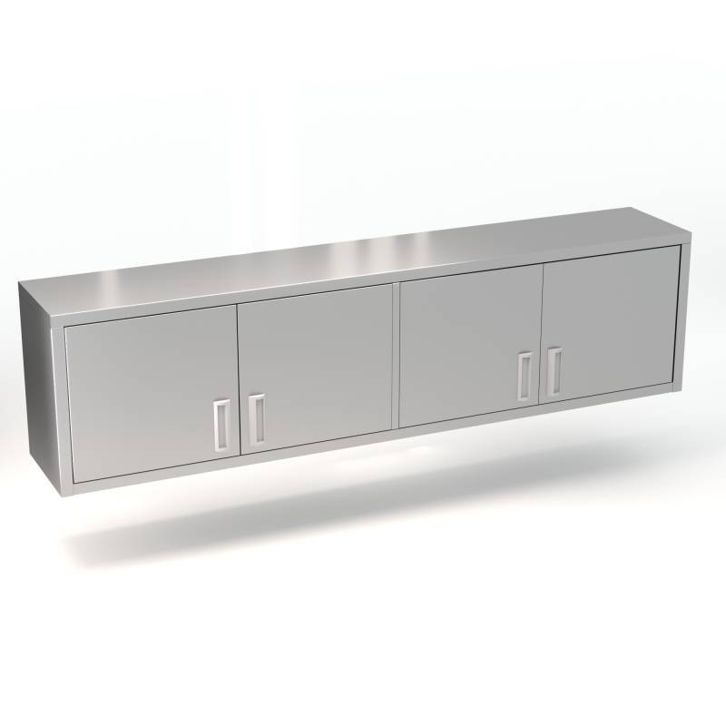 Настенная полка-шкаф 1900*400*600 из пищевой нержавеющей стали AISI 304. Предназначена для профессиональной кухни предприятий общепита. Задняя стенка из стали AISI 430. Оснащена внутренней полкой и распашными дверьми.