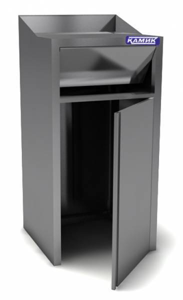 Пост (бак) для мусора 700*700*850 из нержавеющей стали AISI 430 предназначен для предприятий общепита. Каркас из трубы 40х40. Конструкция оборудована распашной дверью (петли слева) и одной откидной, бортом со скосами и закрыта с трех сторон