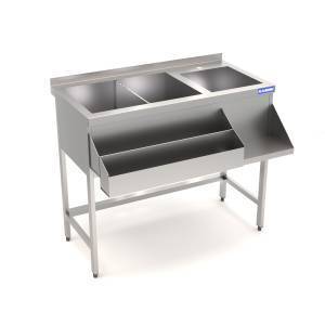 Нерж. сталь 430-1.5 мм, 430-1 мм, 304-1,5 мм, Профиль 20*40, С ванной теплоизолированной 920х390х300, с 2-мя перегородками, мойкой сварной 450х330х250, 2 рейла 1200х100х100, полкой для блендера, обвязка.