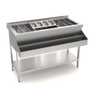 Барная станция 1200*500(700)*850 2 рейла, вставка под 4GN1/9, 4 перегородки.