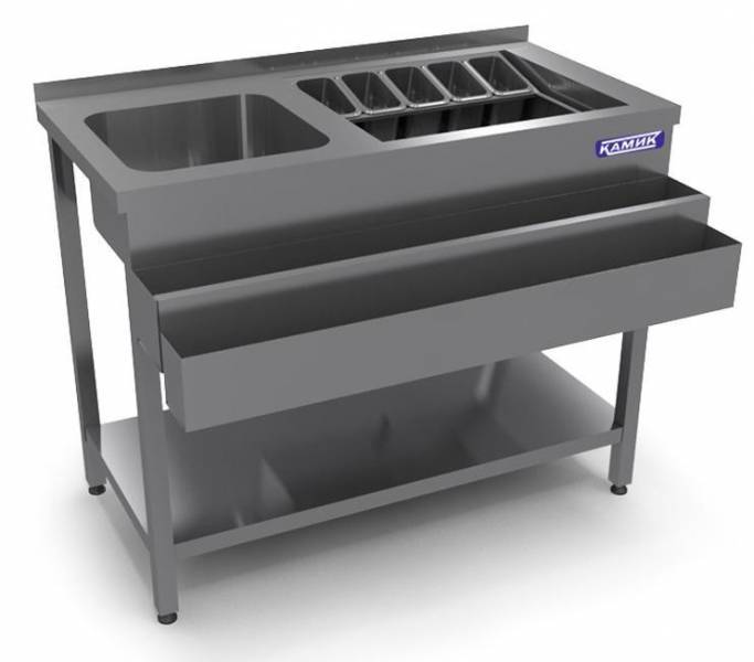 Барная станция предназначенная для баров, торговых сетей, фаст-фуда и других предприятий общественного питания. Встроены мойка справа, сварная ванна для льда 570*500*315 в левой части. Конструкция изготовлена из пищевой нержавеющей стали 304-1,5мм, 430-1мм, профиль 40*40. Перфорированная вставка под гастроемкости 5 GN1/9 (100),