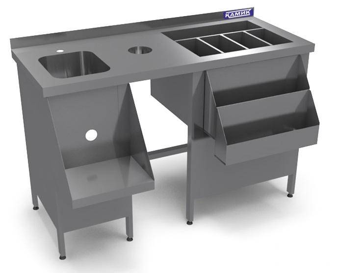 Станция бармена на шести опорах. Конструкция изготовлена из нержавеющей стали 304-1,5мм, 430-1мм, проф.20*40. В наличие борт для удобной установки у стены. Встроена одна сварная ванна GN ½