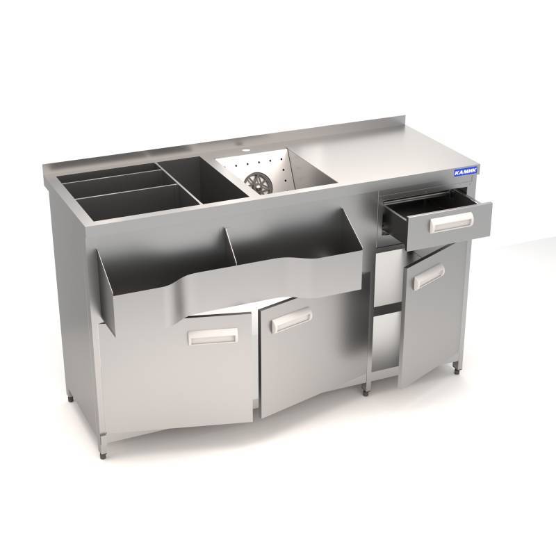 Барная станция 1500*550(710)*900 1 рейл, омыватель д/стаканов, ящик д/кофеотходов.