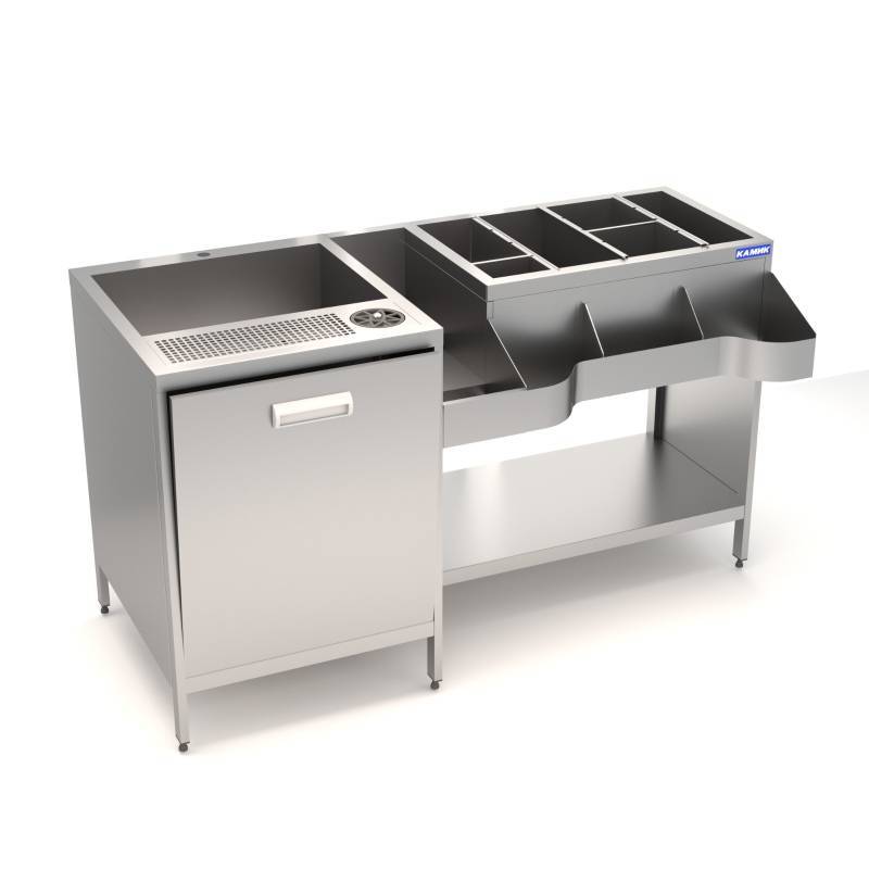 Барная станция 1600*500(700)*900 1 рейл, омыватель д/стаканов, откидной бункер, мойка слева