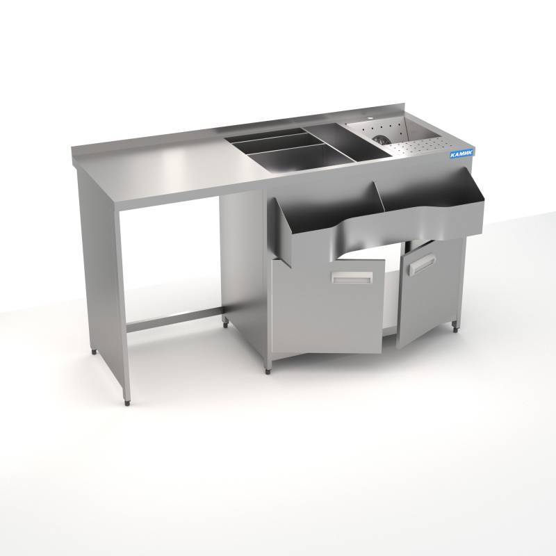 Нерж.сталь 304-1,5мм, 430-1,0мм. проф. 20*40, с ванной для льда 550*530*300мм. теплоизолированной , с перегородками съемными, мойкой сварной 300*500*300мм. с омывателем, полкой, 1 рейлом. двери распашные. Отсек п/оборудование 610мм, борт.