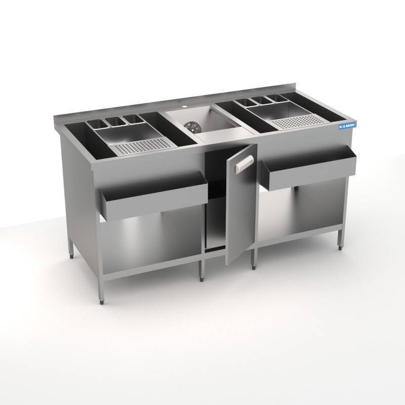Барная станция 1600*700(800)*850 2 рейла, 1 омыватель д/стаканов