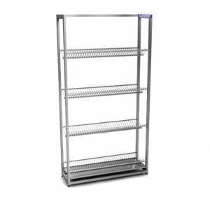Стойки из стали AISI 430, 4 Полки-решетки из стали AISI 430, поддон из стали AISI 430. Регулируемое расстояние между полками 130 мм.
