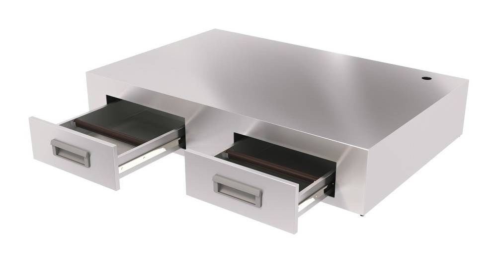 Нерж. сталь 1мм-430, нагрузка 80кг, встроено 2 ящика для кофеотходов.