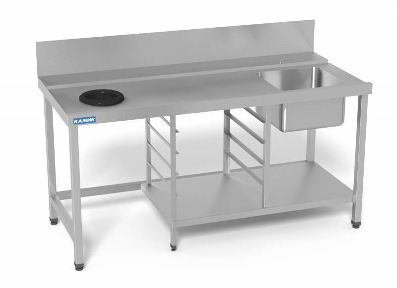 4 опоры, цельнотянутая мойка 500х400х250, направляющие для 4 посудокассет, отверстие для сбора отходов