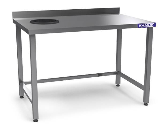 Стол для сбора отходов 1200*600*850 с отверстием, каркас из пищевой нержавеющей стали AISI 430 устойчивой к коррозии, с бортом и обвязкой ножен для повышения устойчивости