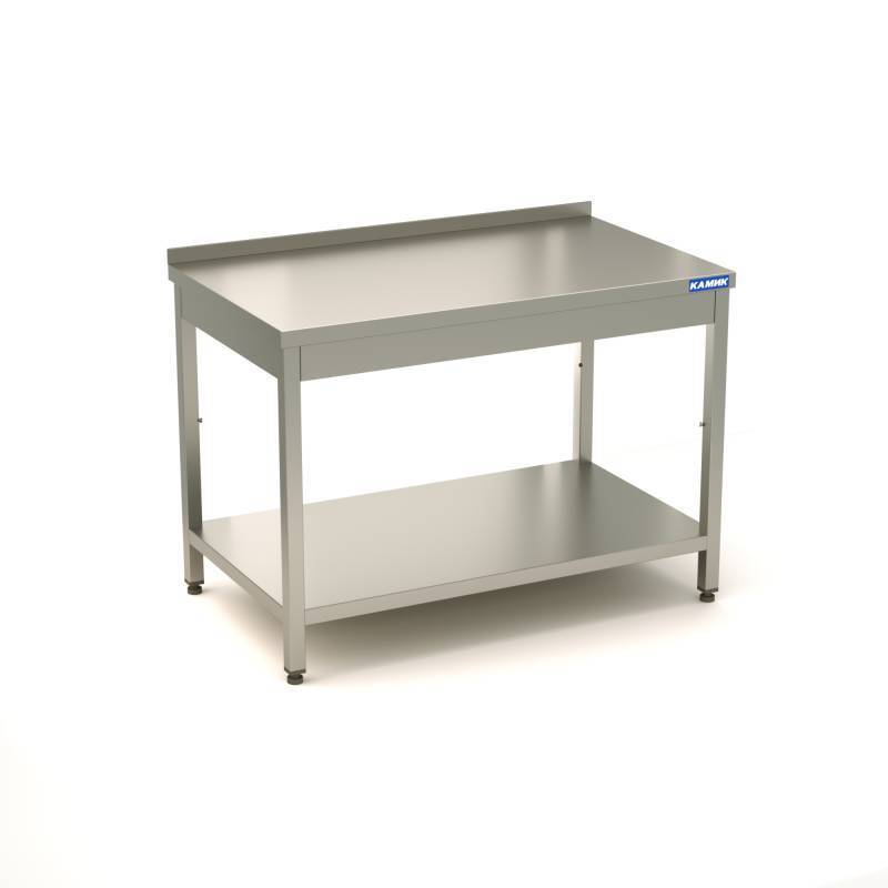 Столешница сталь AISI 304, труба 40х40 сталь AISI 430, Без обвязки ног, фартуки h-85мм. с 4-х сторон, Борт, Полка.