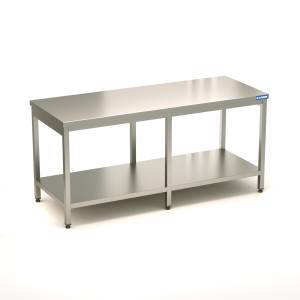 Производственный (нейтральный) стол 1800*400*850 со столешницей из пищевой нержавеющей стали AISI 430 на шести опорах, с полкой и без борта