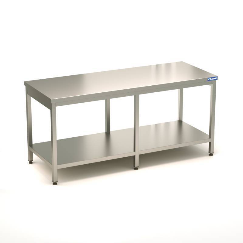 Производственный (нейтральный) стол 1800*700*850 со столешницей из пищевой нержавеющей стали AISI 430 на шести опорах, с полкой и без борта
