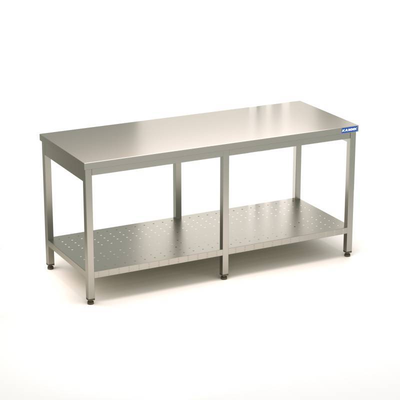 Производственный (нейтральный) стол 1800*600*850 с перфорированной полкой, каркас и столешница выполнены из укрепленной пищевой нержавеющей стали AISI 430, борт отсутствует