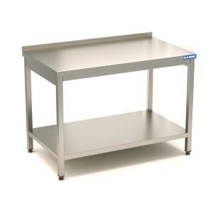 Производственный (нейтральный) стол 1600*800*850 полностью выполнен из пищевой нержавеющей стали AISI 304 с бортом и полкой, прикрепленной к ножкам