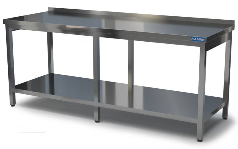 Столешница сталь AISI 430, труба 40х40 сталь AISI 430, полка перфорированная, борт , 6 опор.