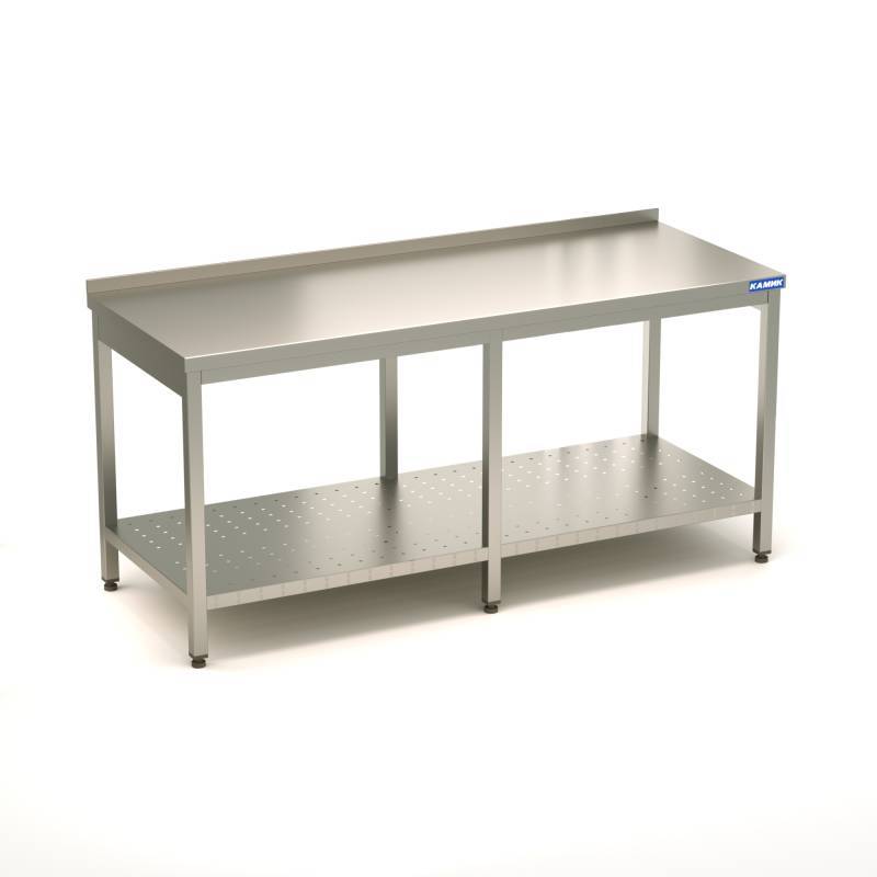 Металлический производственный (нейтральный) стол 1800*600*850 из нержавеющей стали AISI 430, перфорированной полкой и полкой