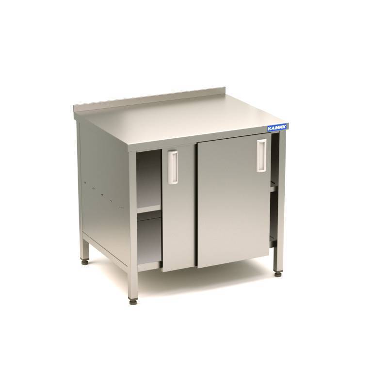 Столешница из стали AISI 430 Каркас из стали AISI 430 Двери-купе с бортом, дно + полка.