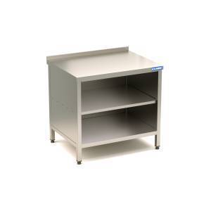 Закрытый стол 900*700*850 без дверей с бортом, одной полкой и дном, каркас из столешница из антикоррозийной пищевой нержавеющей стали AISI 430