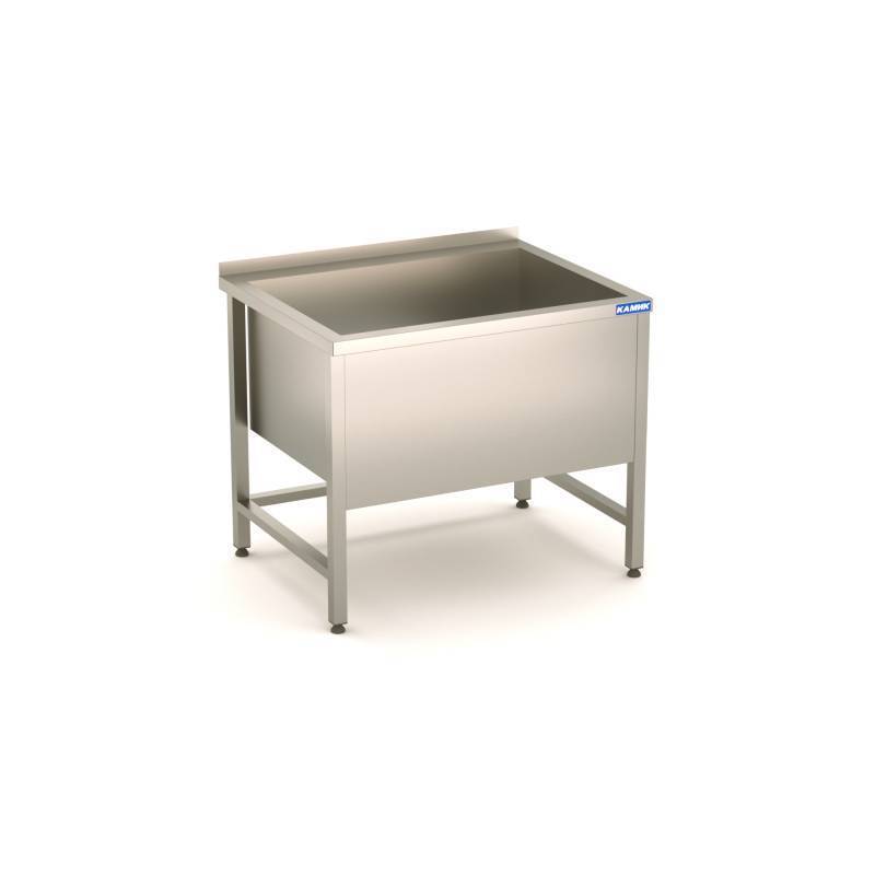 Ёмкость смещена вперед. Ёмкость сварная из стали AISI 304 (1 емк.) 900*500*300, Каркас сварной из стали AISI 430, обвязка, с фартуком, борт.