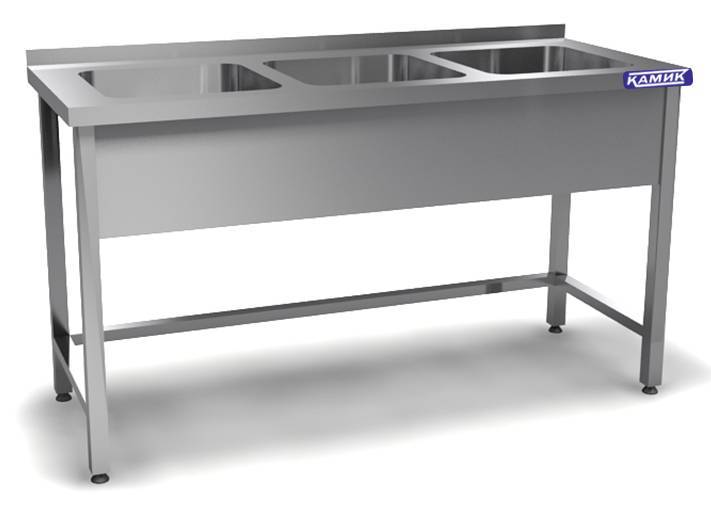 3 емкости цельнот. из ст AISI 304 400*400*250, Столешница из стали AISI 430, Каркас сварной из стали AISI 430, обвязка, фартук с лиц стор , борт.