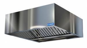 Зонт вытяжной пристенный коробчатый ВП-К-1810 из пищевой нержавеющей стали AISI 430 с жироуловителями (лабиринтными фильтрами) для очистки воздуха на профессиональной кухне, возможна дополнительная комплектация